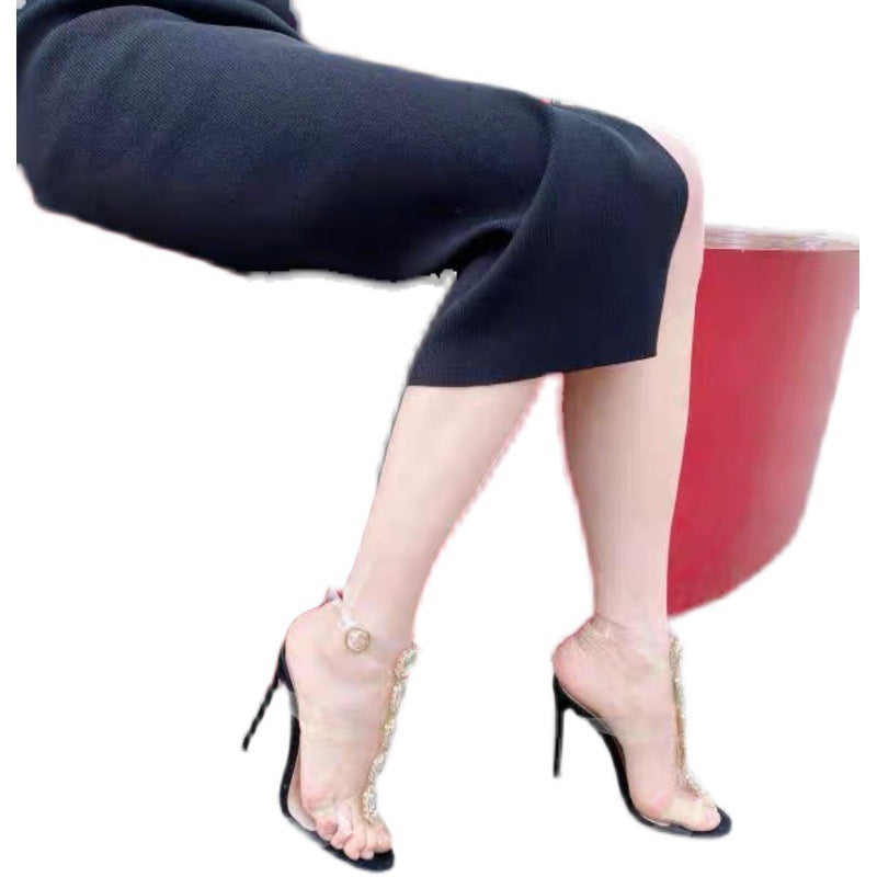 New Heart-shaped Gemstone Transparent Stiletto Sandals For Women