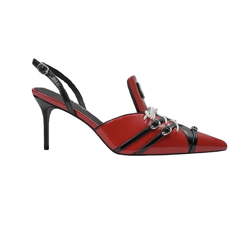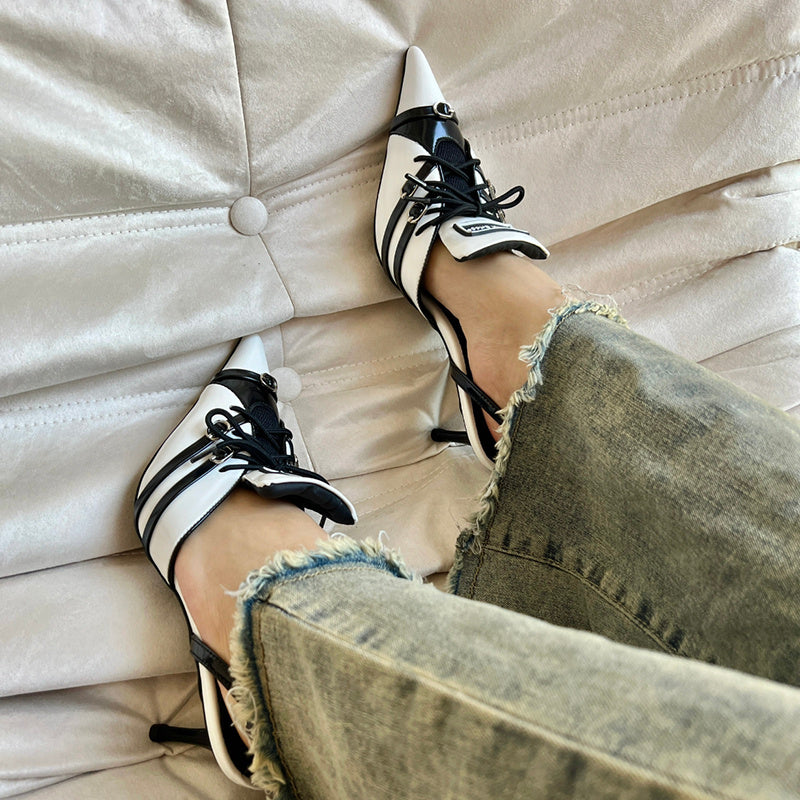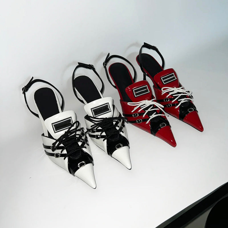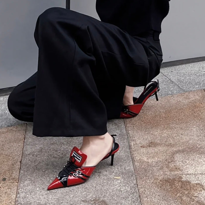 Retro Pointed Stiletto Heel Hollow Patent Leather Sandals For Women