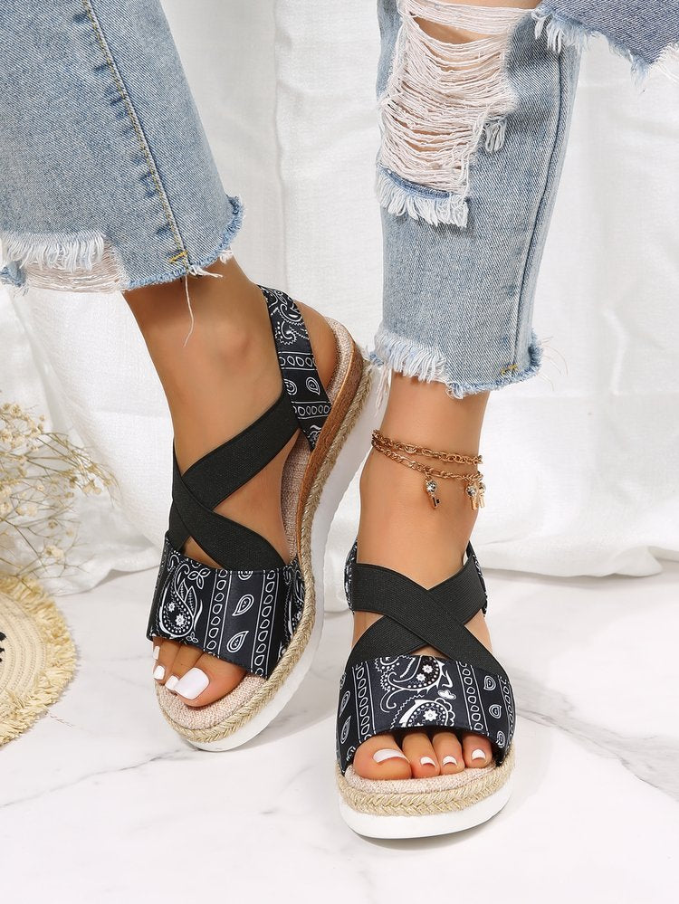 Summer Wedge Sandals Women Fashion Pattern Ankle-strap Buckle Sandals Women
