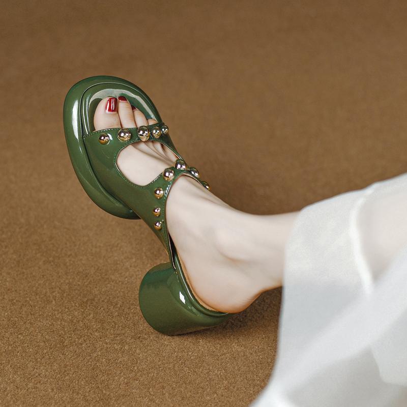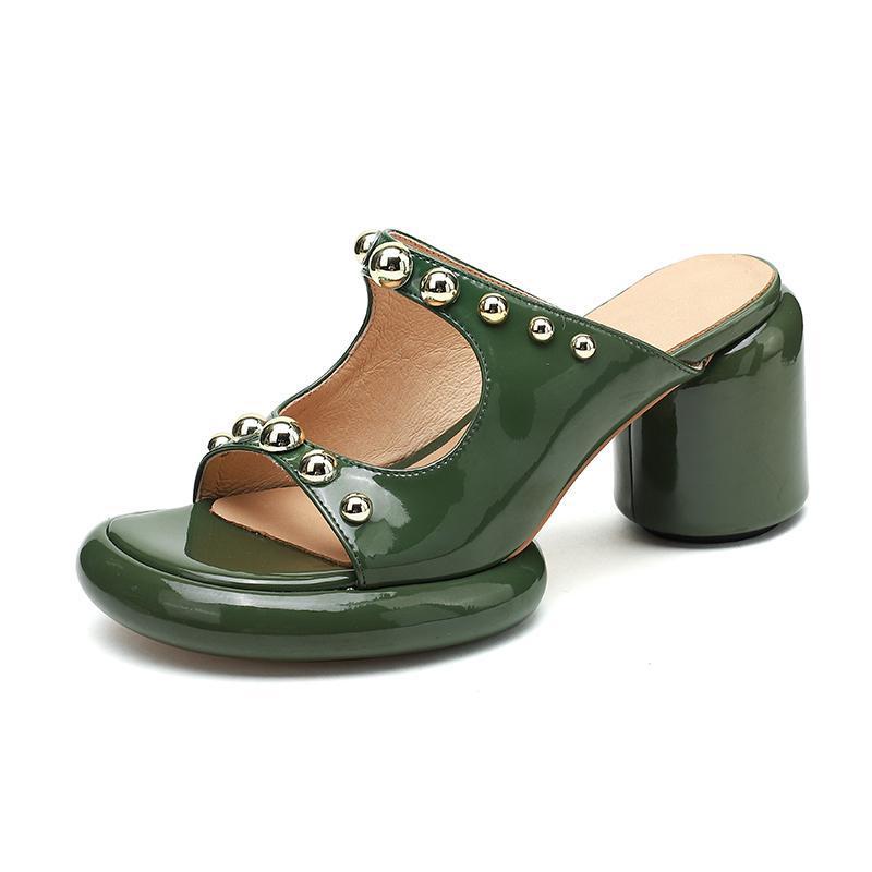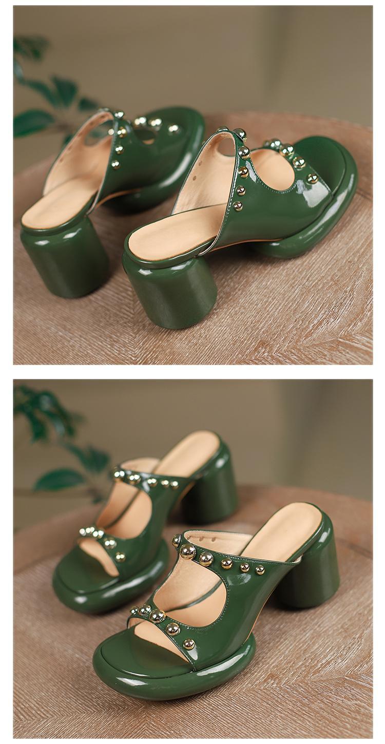Waterproof Platform Thick Heel Green Rivet Sandals For Women